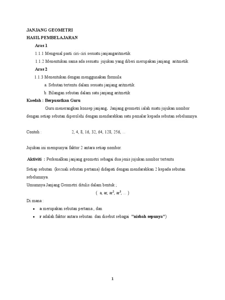 Indeks ialah satu contoh bagi janjang geometri kerana nisbah sepunya baginya adalah sama. The geometric progression formula is used to find the n th term in the. Hasil tambah n sebutan pertama. (b) tiga sebutan positif berturutan bagi suatu janjang geometri. Sum to infinity janjang geometri. (a) 0.8888 … (b) 0.171717… soalan berkenaan formula sebutan ke n janjang geometri : Approaches infinity (n → ∞), rn approaches zero (r n → 0),. Penyebut bagi formula janjang geometri. Hasil tambah sum to infinity Jom ke subtopik seterusnya, infinity beb~ haha. Find the nth term of each of the following a.p. 5.2.1 / 5.2.2 mengenal pasti janjang geometri / identifying geometric progressions. (a) 0.8888 … (b) 0.171717… Janjang geometri (jg) ialah suatu jujukan nombor dengan. Tiga sebutan berturutan bagi suatu janjang geometri. Janjang geometri ( ) ialah jujukan berangka, sebutan pertama yang berbeza daripada sifar, dan setiap sebutan, .